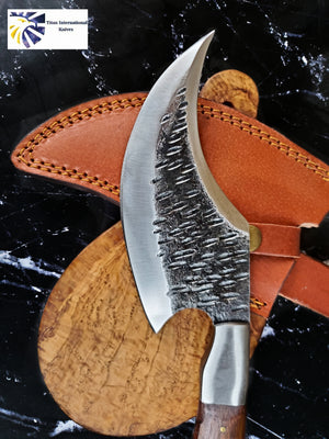 The Viking style axe is very nice and even better than my expectation (which was high). It's a very good value and for me, it's a display item. The blade is really pretty, the forging and finish are spot on, and the handle is probably the most eye-catching element. I am a knife collector and have many displayed. My wife sees them, of course, and when she saw the axe, her first response was, "wow, what a beautiful handle". There was also a bonus fixed blade knife sent along, which was unexpected, thank you very much to Titan Int. I have previously purchased several Titan Int fixed blade knives at a county store in Northern CA. They were also nice pieces, great looking damascus blades, and the scales were nice material and finished well too. I am very happy with my purchases.
